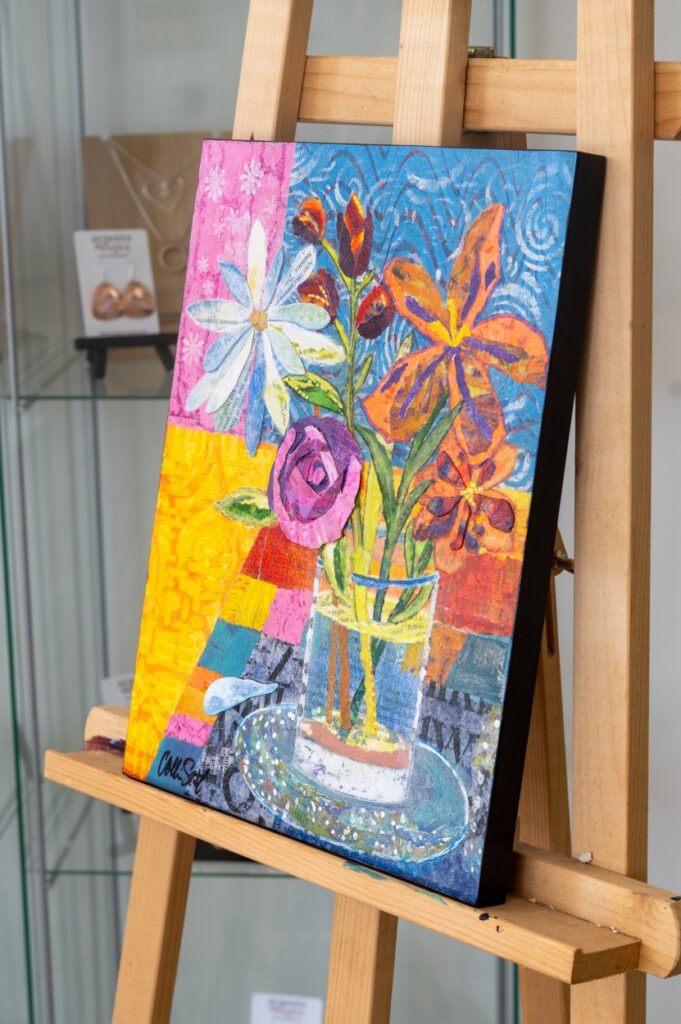 11×14 Mixed Media on standard cradled wood panel (unframed); Hand-printed patterned